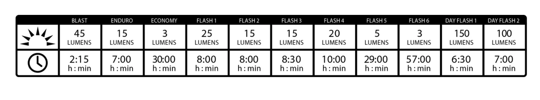 Its co-moulded construction is more compact, but still boasts five LEDs for up to 150 lumens of output. With 11 output modes, including a Daytime Flash mode, it’s got options for any time day or night.