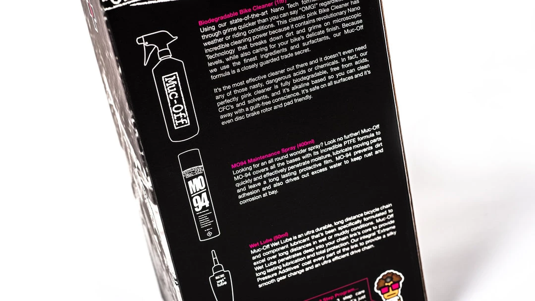 Muc-Off Biodegradable Bike Cleaner has an incredibly effective cleaning formula containing ‘Nano Technology’ that also cares for your bike’s delicate finishes. It contains no harmful acids, CFC’s or solvents and is fully biodegradable.