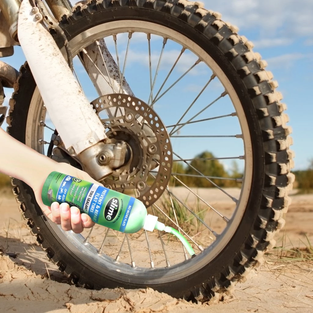This Slime tyre sealant should not be used on tyres losing air from damaged rims, bead leaks or side wall raptures. It is formulated to off-highway tires such as dollies, ATVs, dirt bikes, tractors and wheelbarrows.
